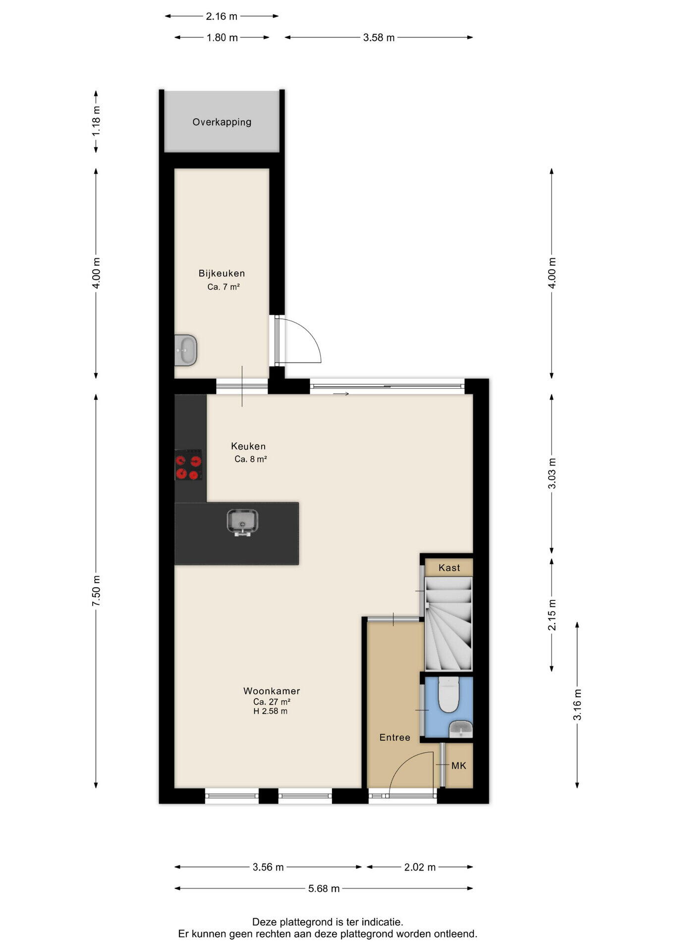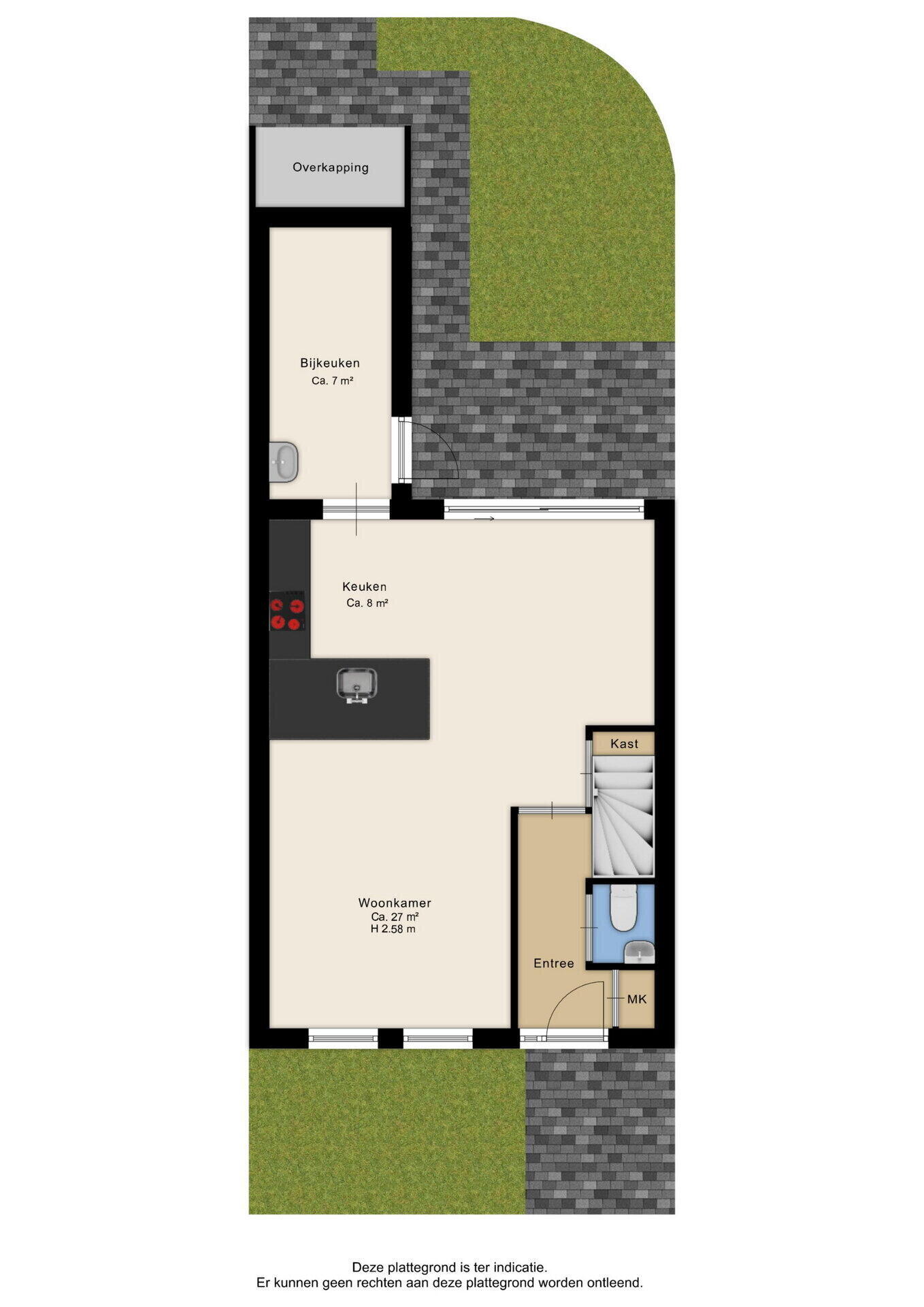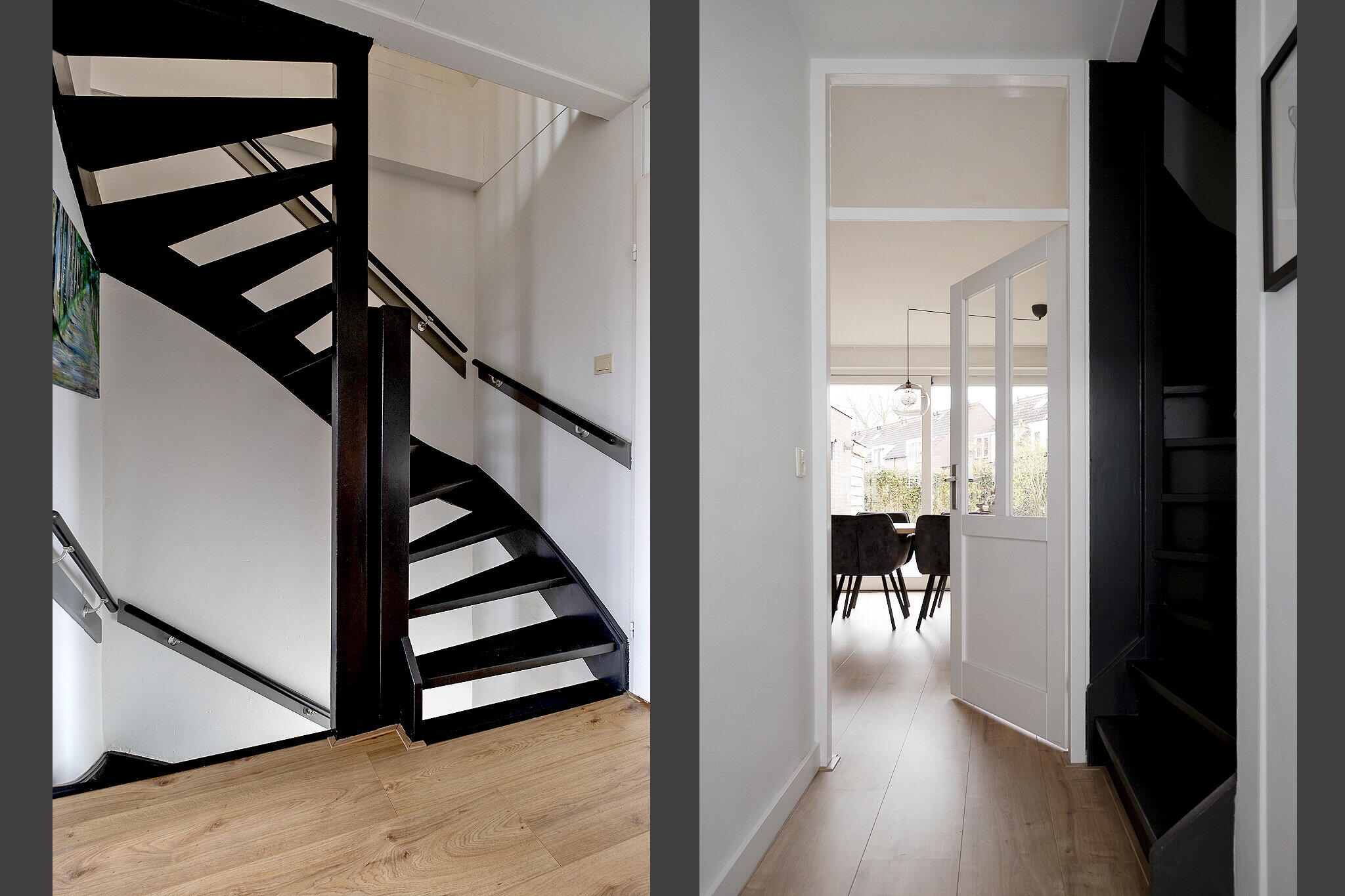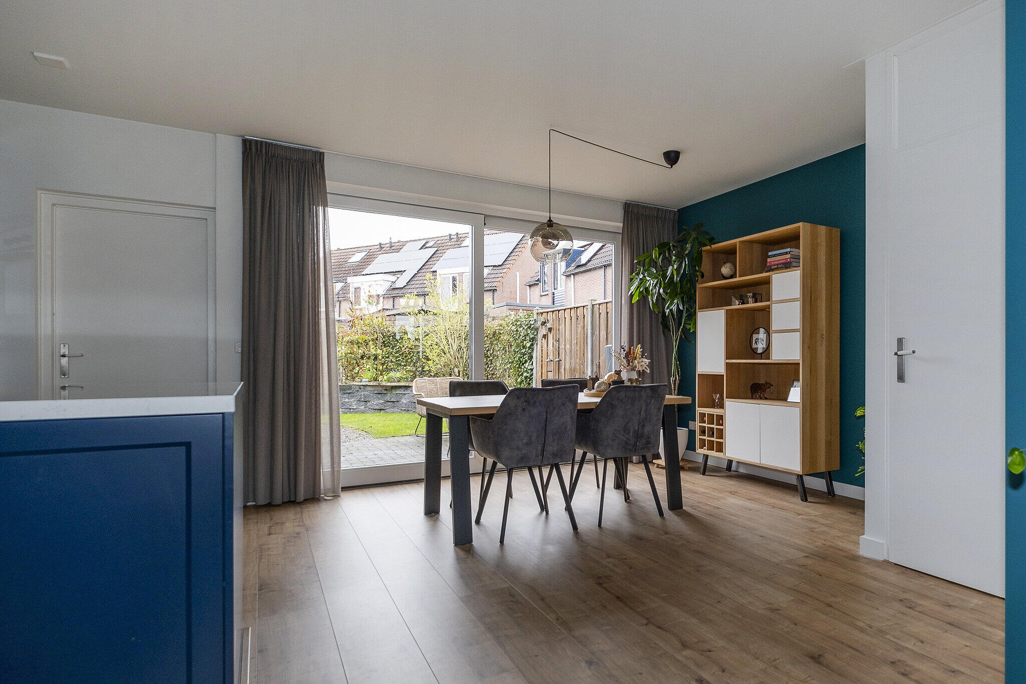 Entree/hal met meterkast en toilet. Sfeervolle woonkamer met trapkast en veel lichtinval. De moderne open keuken (tezamen groot ca. 35 m²) is nieuw geplaatst in 2021 en beschikt over een inductiekookplaat met afzuiging, koelkast (2025), oven en Quooker. Vanuit de keuken toegang naar de praktische bijkeuken (ca. 7 m²) Vanuit de bijkeuken is de onderhoudsvriendelijke achtertuin bereikbaar. De gehele begane grond beschikt over vloerverwarming.