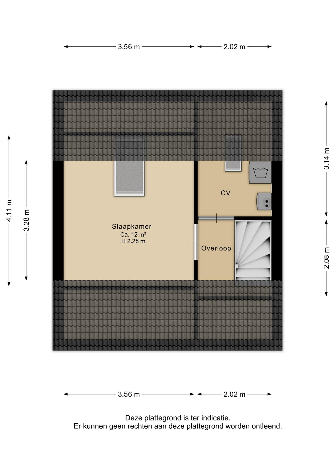Via een vaste trap bereikbaar. Overloop met toegang tot cv-/wasruimte en de vierde slaapkamer (ca. 12 m²)